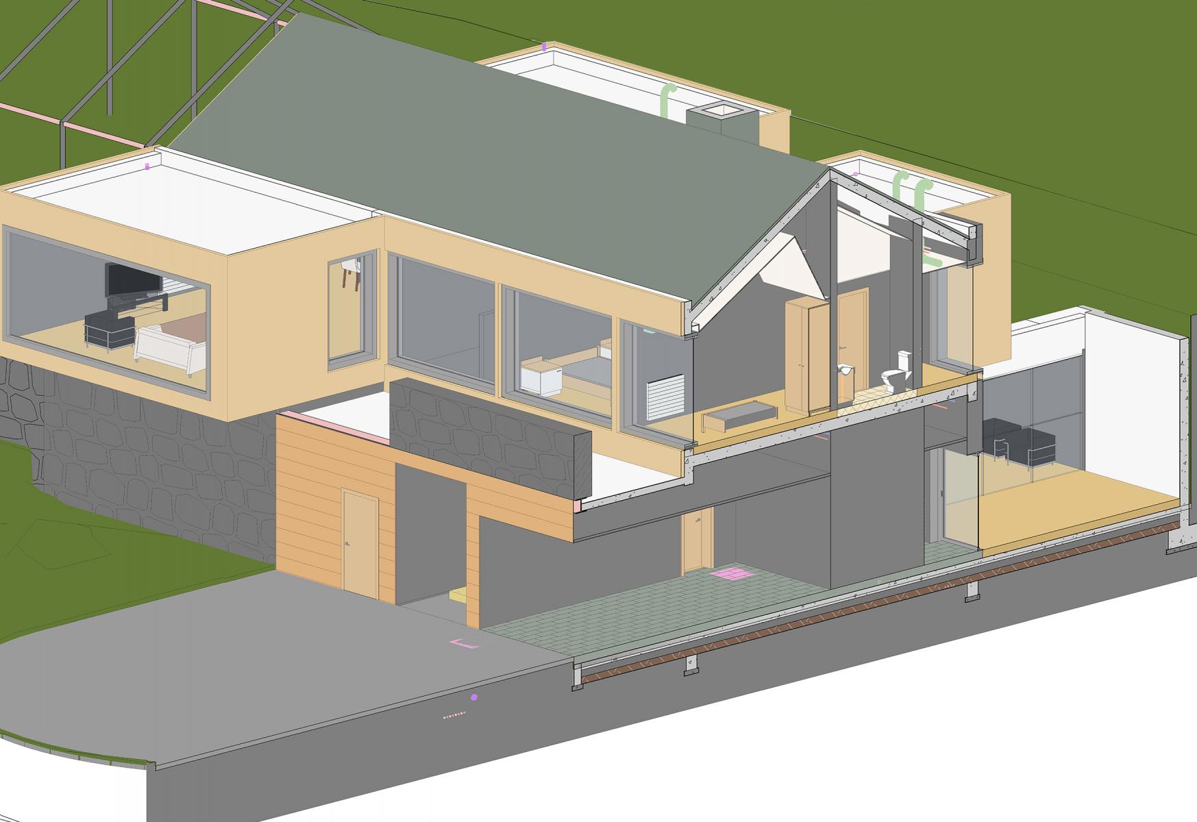 This project refers to a single-family residential building located in Braga, an architectural plan that encompasses the implementation of foundations and structures in order to reach a simple and economic solution. The building includes a ground floor, first floor and penthouse, with stucco undertaking the integrated design of all engineering disciplines and coordination.