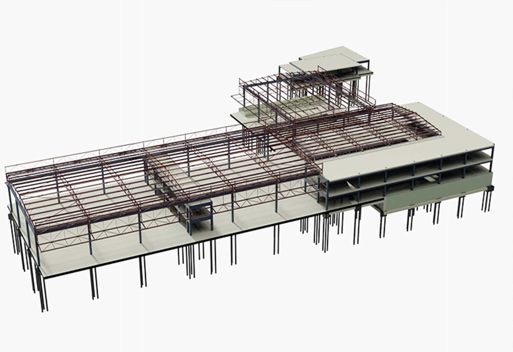 Este projeto compreendeu o dimensionamento das fundações estruturais das novas oficinas e escritórios da VOLVO em Anhaguera, em São Paulo. As estruturas são constituídas por elementos de betão moldado in loco, betão pré-moldado e estruturas metálicas que foram fabricadas em estaleiro e montadas no local. A modelação integral do projeto em BIM foi determinante para a compatibilização das operações de fabrico das estruturas off-site e posterior montagem no local.