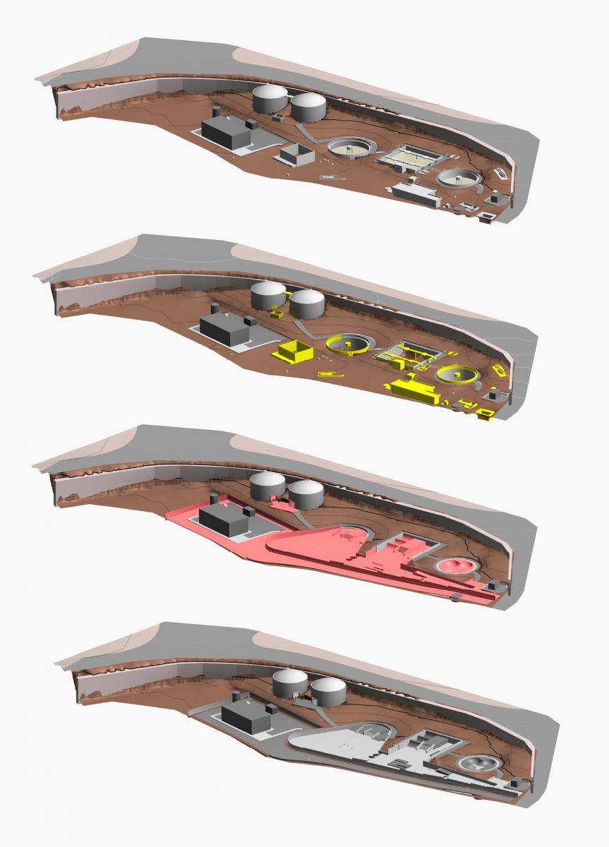 Projeto de demolições, modelação do terreno e arranjos exteriores da ETAR de Paredes, Portugal, desativada no final de 2014, e sua compatibilização com o projeto arquitetónico do parque de skate da Câmara Municipal de Paredes.