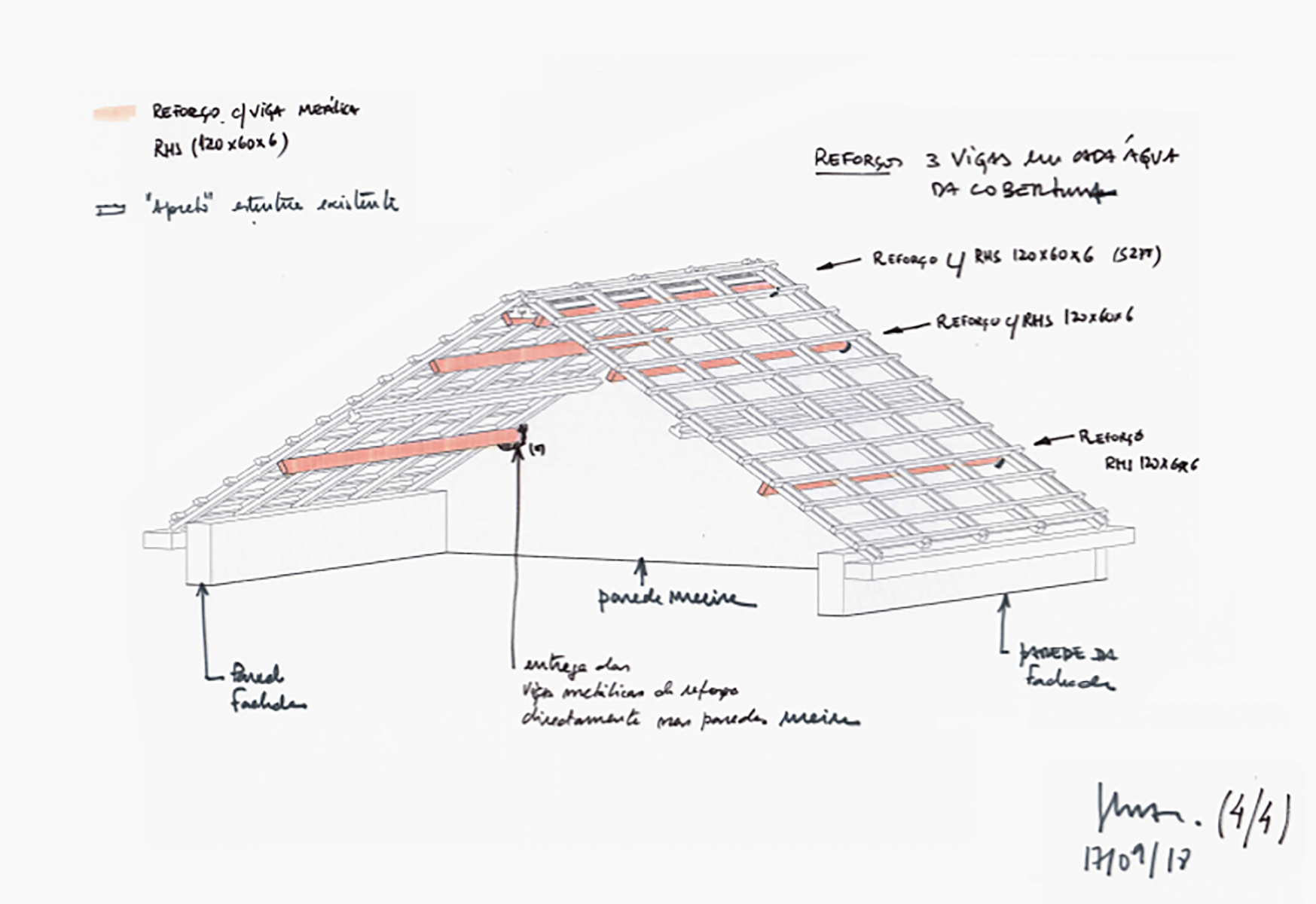 O projeto arquitetónico global contempla a reabilitação e reconversão de uma moradia existente com um piso térreo, dois pisos elevados e cobertura. No geral, a reabilitação inclui a demolição de pavimentos, com exceção da cobertura em telha, bem como estruturas interiores existentes, para a construção de novos pisos e reorganização de espaços interiores.